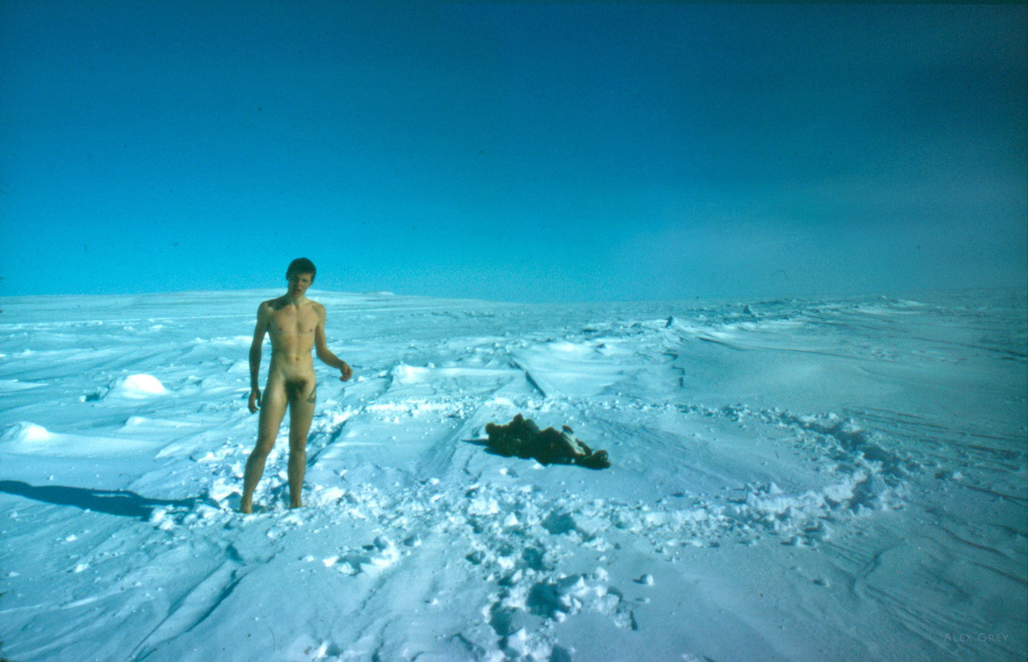 The second sculpture was a totem/urn. I read a passage from the Holy Bible, then set it into the urn and ignited it. I repeated this procedure of reading and burning with the Qur'an and the Bhagavad Gita. After the books had been burned, I mingled the ashes together, then rubbed them on my body.