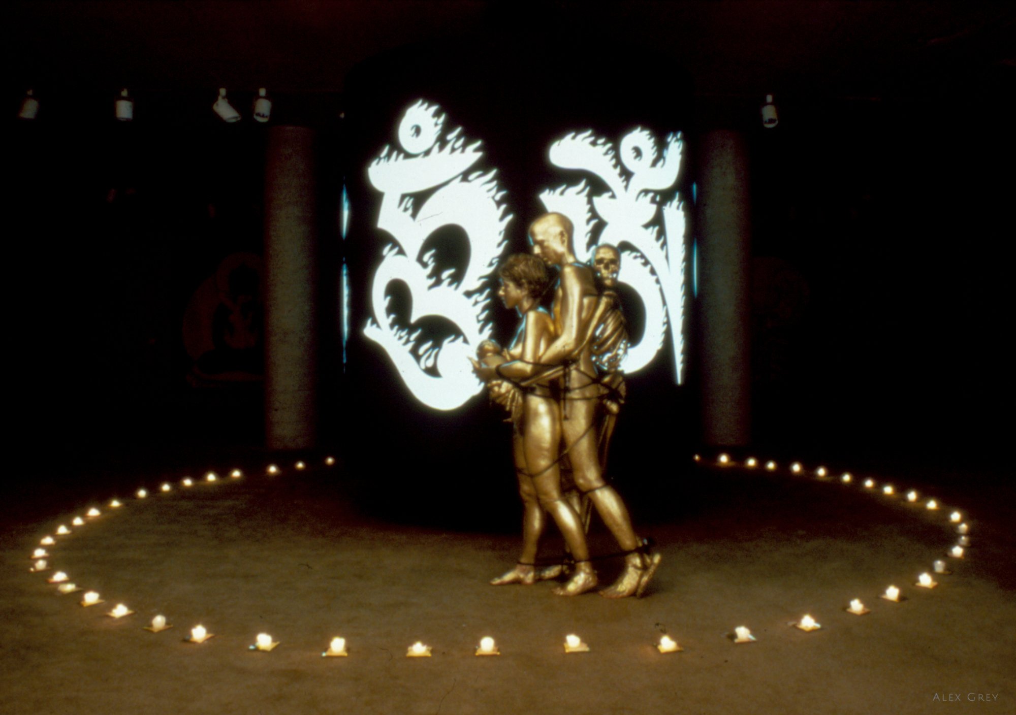 Music and chanting of Jewish, Christian, Hindu, Buddhist, and Muslim religions were intermixed and interwoven throughout the performance so that several layers of sound were occurring simultaneously.